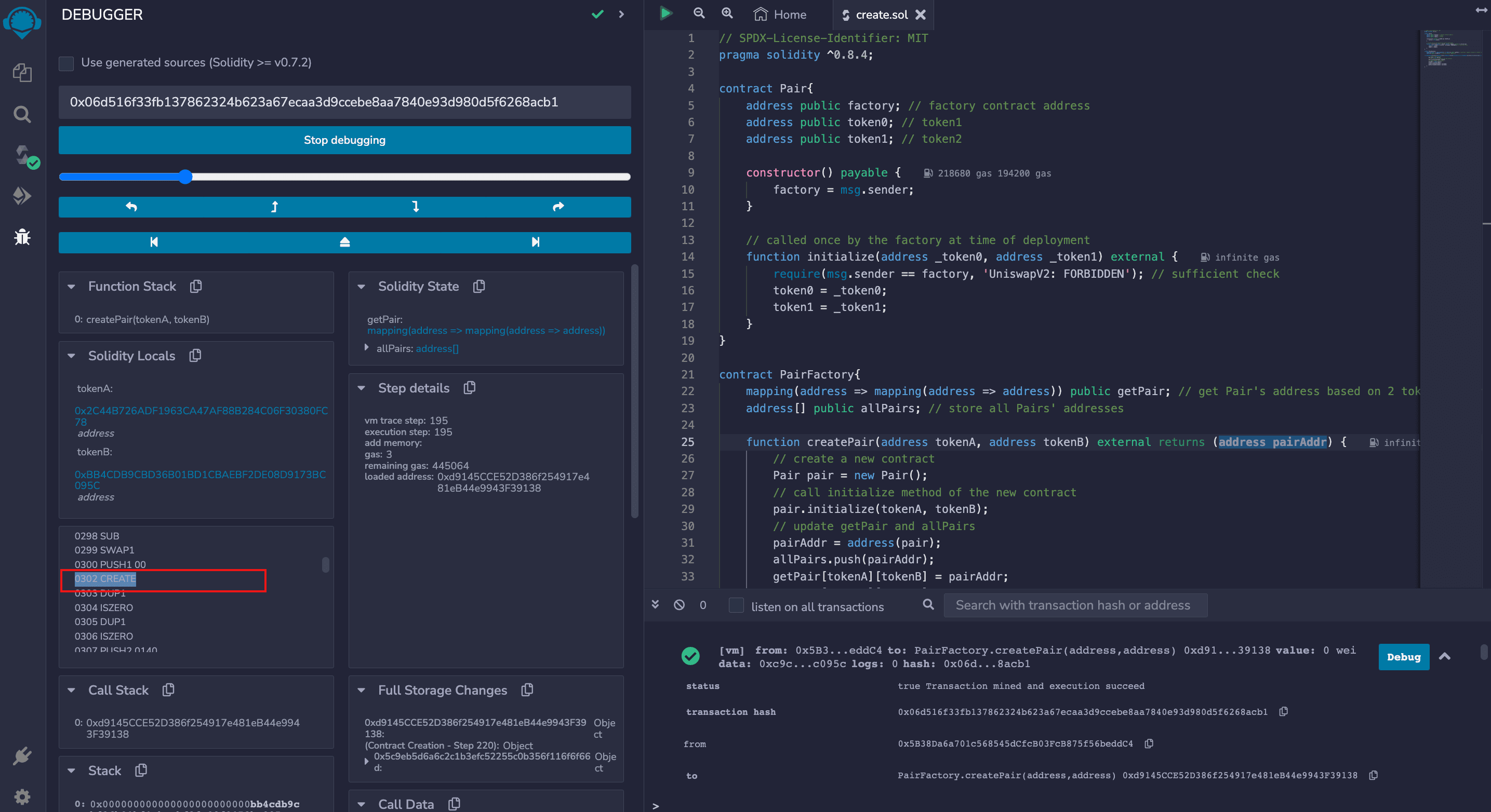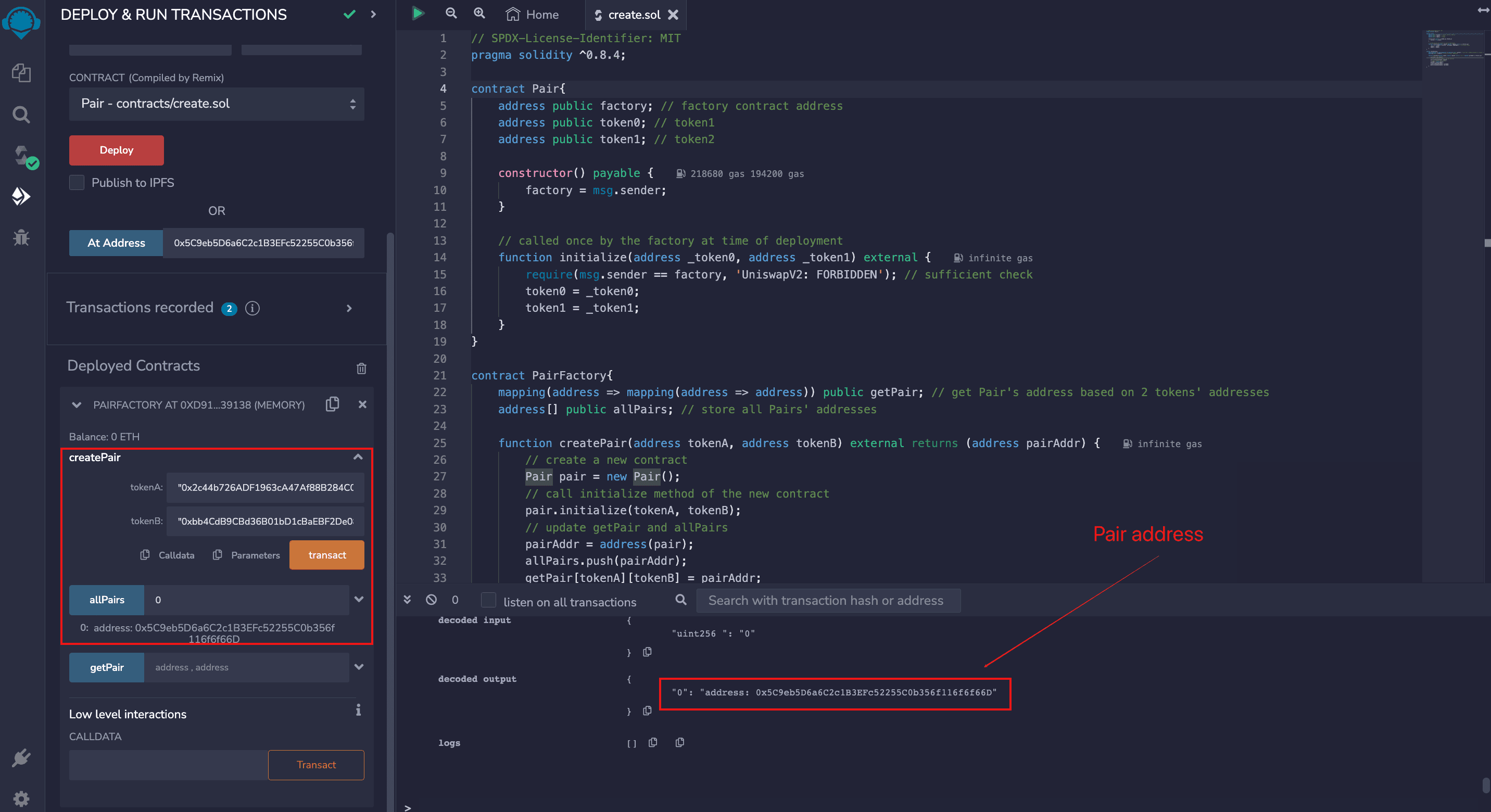 Below we will implement a simplified Uniswap with create: Pair contract is used to manage token addresses, PairFactory contract is used to create new Pair contracts and manage Pair addresses.