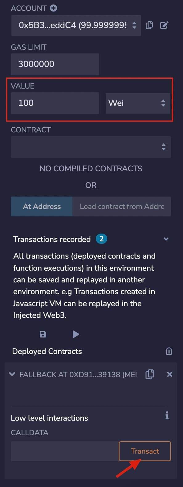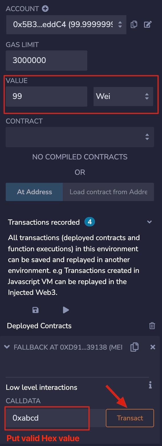 msg.datain "CALLDATA", and click "Transact".