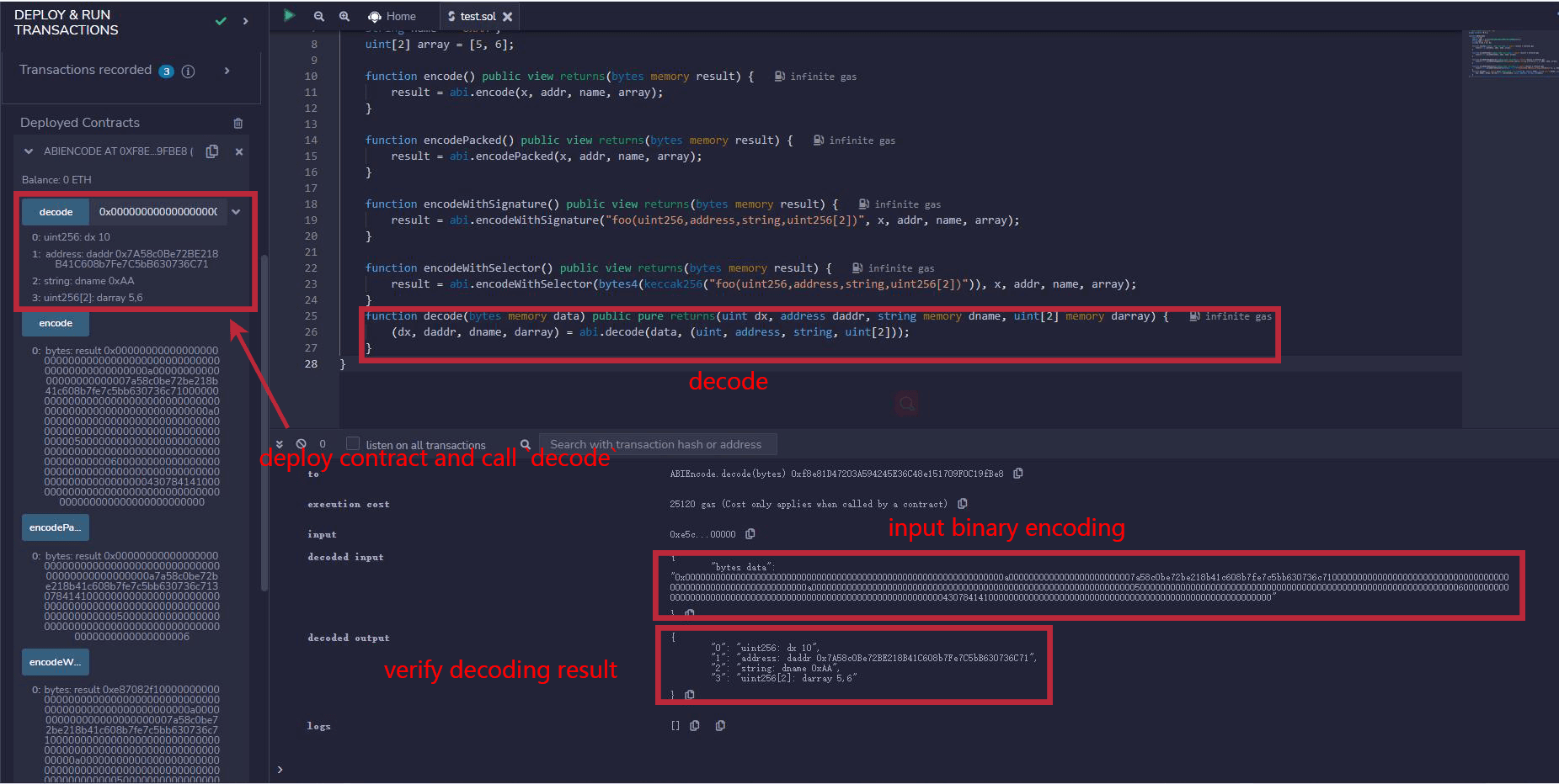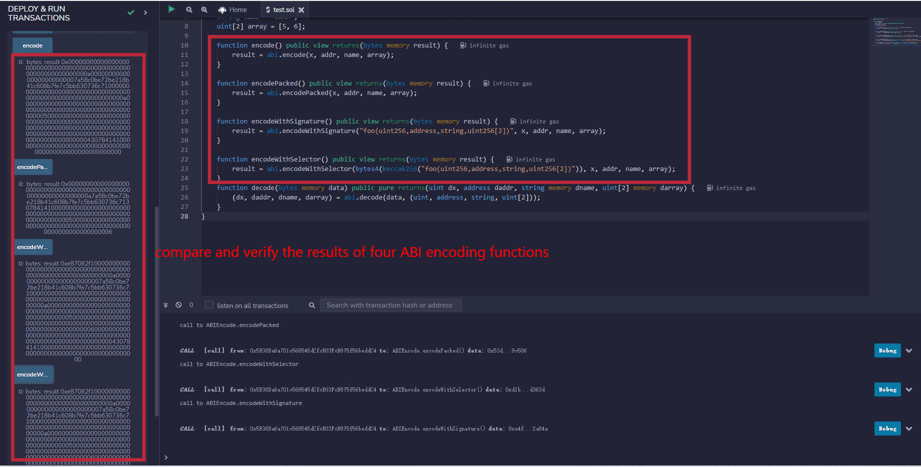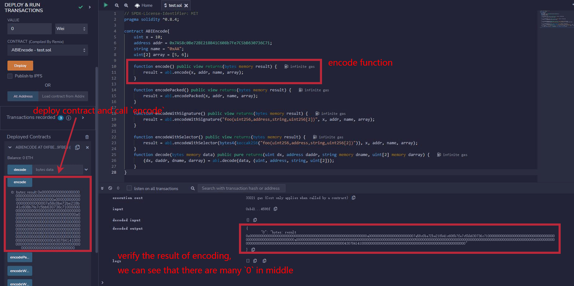 deploy the contract to check the encoding result of